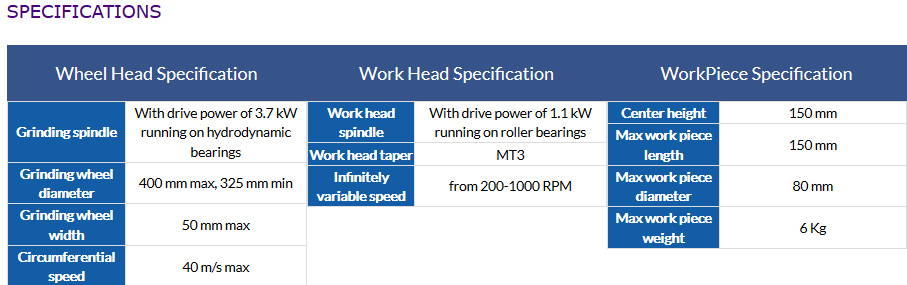 Grinding wheel diameter | 400 mm max, 325 mm min |