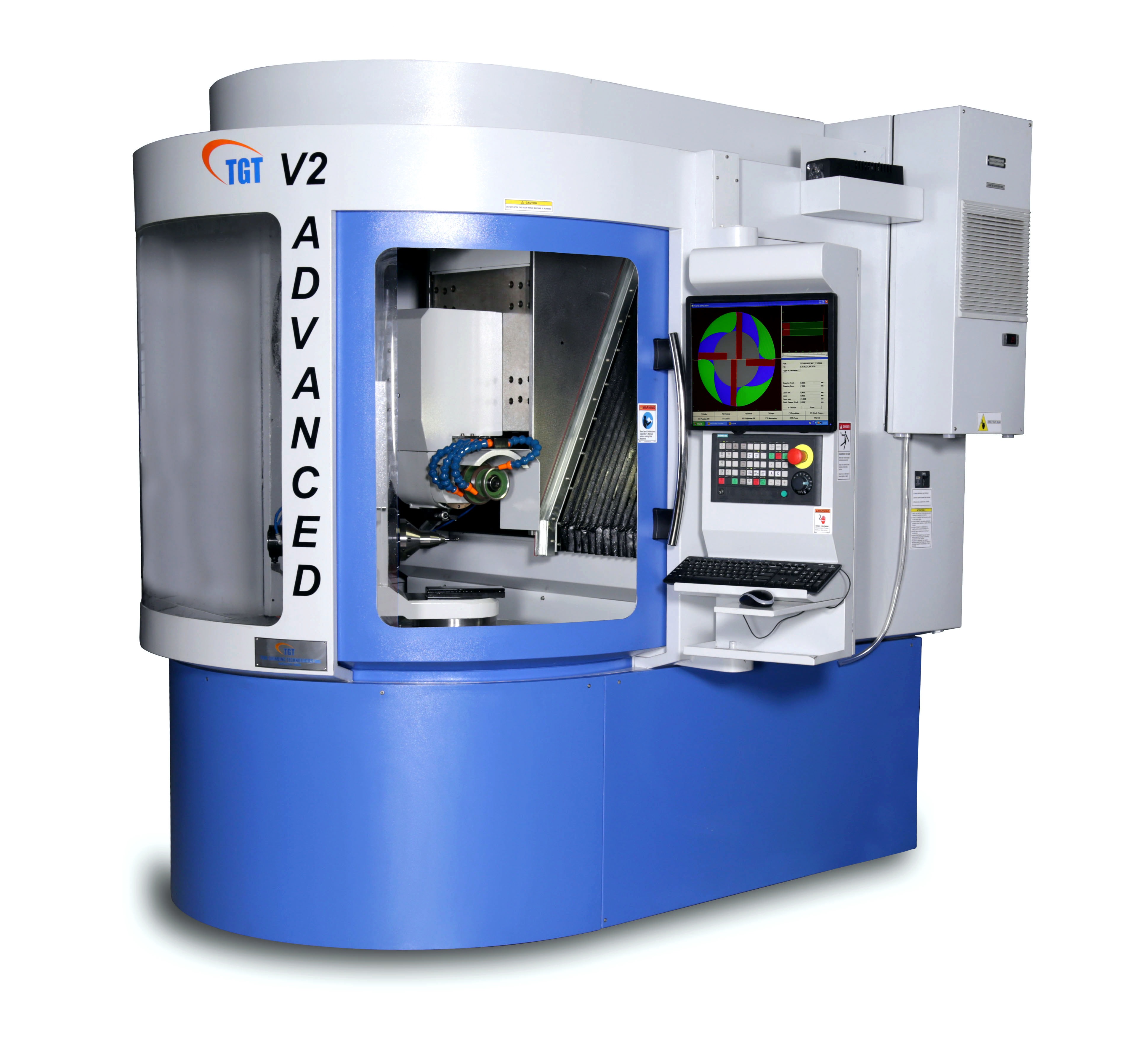 - V2 ADVANCED Optima is equipped with highly efficient spindle motor of 10 HP continuous power to allow bigger diameter solid carbide tools to be ground with less number of passes.